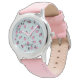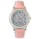 Cute personalised wrist watch for kids with little pink ladybugs and custom name on light blue. Perfect birthday gift for a little girl!