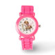 Um relógio com uma ilustração adorável. Um pequeno pônei marrom comendo margaridas felizes.