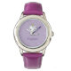 Um relógio roxo com um unicórnio fofo em cor pastel e um nome personalizável: o presente perfeito para uma garota que ama personagens de fantasia!