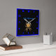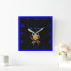 Uma foto de uma aranha Orb Weaver disparada à noite em sua teia. É brilhante e colorido num relógio de parede quadrado. Foto em Hutchinson Kansas EUA.
