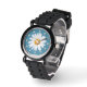 Uma simples margarida sobre um fundo azul. Ele me ama! Pulseiras de relógio reluzentes em vermelho, rosa ou prata.