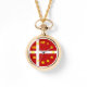 A bandeira vermelha e branca da Dinamarca, ou Dannebrog, tem uma Cruz Nórdica ou Escandinava. O vermelho é o fundo, a cruz é branca. A bandeira dinamarquesa é mostrada aqui num relógio com números amarelos. O relógio mostrado é de homem, mas você pode transferir o design para um relógio de homem e/ou um relógio infantil.
