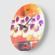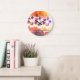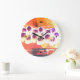 Flores brancas e roxas, amarelas, laranja, fundo vermelho. design de colagem de abstrato de arte no relógio de parede.