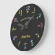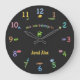 Personalize um relógio analógico divertido "a que este zoológico pertence" com números e pontos coloridos brilhantes e pequenos animais de zoológico fofos.