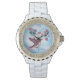 Este é um Único "Um dos Tipos", "Hummingbird e Flor Women's Watch!" Ele apresenta um néctar de beija-flor adorável de lindas flores rosa e púrpura em fundo de nuvem rosa e roxa! Pintura de arte original do artista Kerry Miller.
