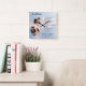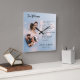 Relógio de parede de casamento com colagem de fotos elegante personalizável com texto.