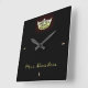 Escolha entre estilos redondos ou quadrados deste relógio lindo e elegante com detalhes bonito e imagem de coroa juntamente com texto para personalizar com nome ou título de paginação. Apenas a coroa preta e amarela.