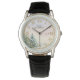 Relógio de couro personalizado para homens – Mostrador Floresta de Inverno Nevada – Presente elegante com algarismos romanos dourados.