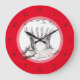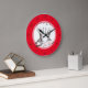 O chapéu de chef desenhado à mão com a faca de chef e ervas neste relógio de cozinha de cor personalizada para chefs e cozinheiros.