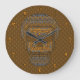 Esta mandala laranja e preta, com camadas de crânios, relâmpagos, morcegos voadores, teia de aranha, pontas e designs geométricos agudos, foi mascarada sob um crânio para uma imagem divertida e assustadora do Dia das Bruxas.