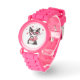 Este adorável relógio de crianças mostra uma ilustração divertida de Boston Terrier em um fundo rosa vibrante. Perfeito para jovens amantes de cachorros, esta peça divertida e na moda faz um presente de excelente para aniversários, feriados ou qualquer ocasião especial!