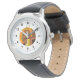Assista com ilustração da cabeça de um pequeno dragão laranja giro no círculo laranja, fantasia fofa / design de conto de fadas para crianças por Maxi Harmony.