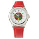 Assista com ilustração da cabeça de um pequeno dragão voador verde giro, em círculo vermelho, fantasia fofa / design de conto de fadas para crianças por Maxi Harmony