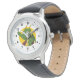 Assista com ilustração da cabeça de um pequeno dragão voador verde giro, em círculo amarelo, fantasia fofa / design de conto de fadas para crianças por Maxi Harmony