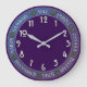 Aqui está um belo relógio com um rosto roxo profundo e números brancos de inverno. No meio de cada feriado está um galho festivo sagrado. Yule, Imbolc, Ostara, Beltain, Litha, Lughnasah, Mabon e Samhain.