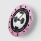 Este relógio de bola de futebol preto e branco, rosado, cor-de-rosa, falso brilho, é perfeito para o seu jogador de futebol ou o quarto do treinador de futebol!