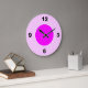 Um simples relógio de parede com um fundo rosa claro sob grandes números pretos e um rosto rosa mais escuro com um contorno branco fino e números simples. Para qualquer sala cor-de-rosa. Clique em Personalizar para adicionar o texto personalizado, alterar as cores de fundo e muito mais.