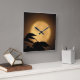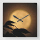 É outono, e uma lua de cheio amarela ouro luminosa subiu atrás das silhuetas pretas de folhas soprando na brisa neste dramático relógio de fotografia de arte. O fundo é iluminado em tons de laranja, ouro e marrom para criar um padrão de abstrato num motivo asiático.