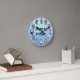 Cute Animal Parade Menagerie Wall Clock apresenta 12 dos nossos animais mais populares como os números em torno de um fundo azul texturizado. Excelente para quartos de criança ou berçários. Junte-se ao desfile de animais e partilhe alguns sorrisos. Designs personalizados disponíveis.