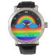 Assista: Legal relógio de moda com bandeira do Arco-Íris, coração do arco-íris e texto "Nova Iorque" facilmente personalizado. Relógio do Arco-Íris Fab em cores arco-íris para LGBTQ, Gay, Lésbica, Parada do Orgulho, casamentos e outras ocasiões.