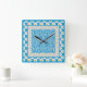 Um relógio de parede quadrado muito bonito, com uma mistura de três padrões de margarida branca em azul, incluindo corações e círculos de cadeia marisca. Parte da coleção Posh & Painterly 'Daisy Chain'.
