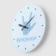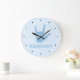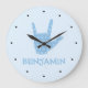 Este relógio de nome de menino com um sinal "Eu amo você" em ASL (Língua de Sinais Americana) e padrão de pontos azuis é perfeito para uma nursery de bebê ou quarto de menino. O nome pode ser personalizado para qualquer nome ou texto.
