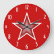 Design moderno com uma estrela vermelha e branca "brilhante" num fundo vermelho. Relógio com um design personalizável para você personalizar com seu próprio texto, imagens e ideias. Note que esta é uma imagem impressa criada usando fotografias originais e técnicas digitais, que ela não brilha ou contém faíscas reais.