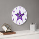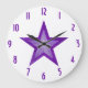Design moderno com uma estrela roxa e branca "brilhante" sobre fundo branco. Relógio com um design personalizável para você personalizar com seu próprio texto, imagens e ideias. Note que esta é uma imagem impressa criada usando fotografias originais e técnicas digitais, que ela não brilha ou contém faíscas reais.