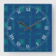 Relógio de Números Romanos Quadrados de Xadrez Azu