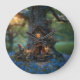 Casa Gnomo bonita em um latido de árvore cercada por bluebells no pôr do sol.