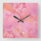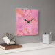 Esta imagem mostra um design de aquarela floral suave e elegante. O padrão é dominado por delicadas matizes cor-de-rosa, misturando-se perfeitamente com laranjas leves e puras. Apresenta flores de cereja inspiradas no florescimento em vários níveis de transparência, criando um efeito criativo em camadas. Pequenas formas semelhantes a estrelas e pequenos pedaços de luz adicionam um toque caprichoso, melhorando a estética etérea geral. Este design seria perfeito para um relógio de parede, trazendo um sentido de calma e beleza para a sala. Sua paleta de cores calorosas e detalhes artísticos a tornam adequada para interiores modernos e antigos.
