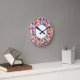 Este relógio de parede moderadamente projetado apresenta um padrão multicolorido com um centro branco. Se você gosta de cores arco-íris então você vai adorar este relógio padrão mosaico. Um bonito relógio de padrão rosa e roxo como este seria um presente pensativo para ela.