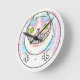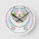 Relógio de novo acrílico de um gato gordo com um sorriso de gato Cheshire. Um gato geométrico e gordo.