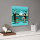 Cada hora é feliz com este Reltro Cocktail Lounge Acrylic Wall Clock. O design moderno do meio século apresenta um vibrante estilo, minimalista, de 1960 desenho de um bar de coquetel clássico. Contra o pano de fundo de uma parede aqua, podemos ver filas de óculos de bebida. Pelo menos podemos ver os teais silhuetas de óculos de bebida. A julgar pelas formas do material, este bar está bem equipado para molhar o assobio, seja qual for a sua preferência pela bebida. Um barman mais competente e personável é manejar o bar com sotaques amarelos. O jovem barman está vestindo uma camisa branca e primitiva com gravata arco preta. Sua boa aparência, cabelo louro e óculos de hipster pretos nos dão todas as razões para acreditar que ele passa seus dias como um ator em luta ou um super-herói. Por um lado, o bonito mixologista está entregando um martini a um cliente do lado oposto do bar. O cliente que espera é um cavalheiro de ombros largos com um terno preto e gravata vermelha. Ele é o tipo de sujeito que é descrito como alto, escuro e bonito mesmo quando ainda é horas até a hora de fechar. Parece que há um banco de bares vermelho e cromo com o nome do Sr. Debonair. No entanto, para não ser presunçoso, ele pergunta, "Desculpe-me. Este assento está ocupado?" Ele está perguntando à garota cabeleira no banco de bares vizinho. Ela é do tipo "garota ao lado", se você vive ao lado de uma beleza perfeita com uma figura que não desiste. Ela está vestindo um vestido preto e segurando um martini em uma mão. Ela espera que ela e o cavalheiro que se aproxima tenham mais em comum que a sua preferência pela bebida e a escolha da cor da roupa. Parece que esta noite ficou interessante. Saúde para você!