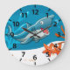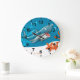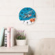 Ilustração gráfica aquática de um tubarão fofo num relógio de parede. ©2015charmanepaulson