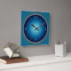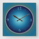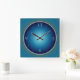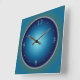 Um relógio de parede simples com face luminosa Azul/ Verde em um relógio quadrado. Disponível também em formato redondo.