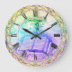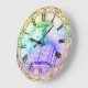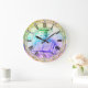 Bíblia Wall Clock. Uma bela apresentação com bíblia aberta e pano de fundo em pastéis macios e borda decorativa. Numerais romanos.