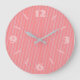 Um belo relógio de parede em padrão rosa poeira e cinza. Cores suaves para combinar com a sua decoração, este design de relógio vem com numerais correspondentes e ponteiros prateados. Disponível em formas redondas e quadradas