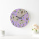 Este relógio de parede botânica é alegre em sua lavanda com decoração de folhas