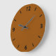 Um relógio de parede "castanho" de cor escura e sólida com números pretos. Este marrom é puro marrom. Clique em "Personalizar" para mudar de cor ou para adicionar texto ou design. Código hexadecimal do produto: 964b00