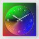 Um design iluminado multicolorido em azul, rosa/laranja e verde. Este design artístico simples tem numerais brancos. Disponível em formas quadradas e redondas.