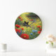 Um relógio de parede lindamente desenhado apresentando um curioso gatinho preto espiando através de um vibrante campo de flores silvestres coloridas. A suave luz solar, a vegetação exuberante e os ricos detalhes florais criam uma atmosfera primaveril calmante, enquanto o adorável gato adiciona um toque divertido e encantador. Perfeito para adicionar calor e personalidade a qualquer quarto, especialmente para amantes da natureza e entusiastas de gatos.
