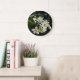 Eleve a decoração da sua casa com a elegância dramática da Arte Botânica Escura. Este relógio de parede sofisticado apresenta uma fotografia macro exclusiva e autêntica de delicadas flores de ameixa branca brilhando com luz luminosa contra um fundo profundo e sombrio.