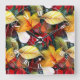 Relógio de parede elegante com um vibrante padrão de folhas de outono em tons ricos de amarelo, vermelho e verde, projetado para trazer calor e charme sazonal para qualquer espaço. Este relógio moderno combina design artístico com funcionalidade, tornando-o um acessório decorativo perfeito para interiores inspirados no outono.