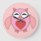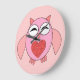 Este relógio maravilhoso apresenta um desenho fofo de uma coruja rosa com olhos sonolentos, um pequeno bico e pequenos pés fofos. A coruja tem um grande coração de amor vermelho no meio da barriga e asas bem abertas prontas para dar um grande abraço a alguém.