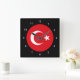 Relógio de Parede Quadrado com bandeira da República da Turquia, bandeira vermelha com sol branco, lua e estrela