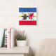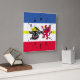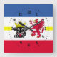 Relógio de Parede com bandeira variante de Meclemburgo-Pomerânia Ocidental; design com cinco faixas horizontais de vermelho, branco, azul e amarelo, e com ilustrações da cabeça do touro e da águia vermelha