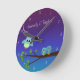 Duas corujas bebês se abraçam e se acomodam para dormir sob um céu de estrelas cintilantes enquanto a mãe coruja sobre elas. Fácil de personalizar ou limpar o texto apenas para trabalho de arte. Este design funciona para relógios de médio e grande porte. Arte original da Menagerie da Night Owl, 2010.