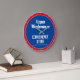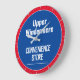 Relógio de Parede para um Compro de aldeia, Lojas locais, Loja de conveniência ou Saída de varejo. Edite a design para alterar o texto para se adequar. Cor azul e vermelha.