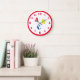 O design apresenta as letras "ABC" em cores primárias e fonte estencillada grande. Os números do relógio são exibidos em uma impressão vermelha fácil de ler. O 12, 3, 6 e 9 são ligeiramente maiores que o resto dos números. Todo o design é circundado por uma borda vermelha. Também disponível em azul.